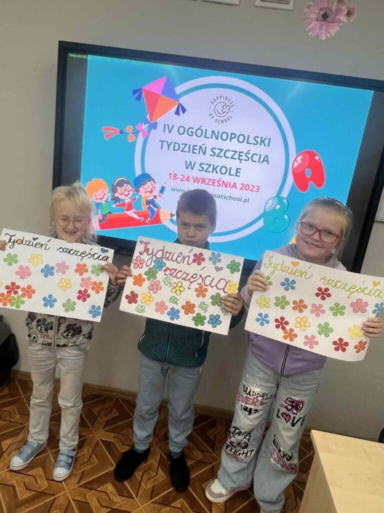 W dniach 29 września – 5 października w naszej szkole odbył się Tydzień Szczęścia – wyjątkowy czas pełen radości, życzliwości i pozytywnej energii. Tegoroczne hasło to „SZCZĘŚLIWI, BO RÓŻNORODNI”. Uczniowie z entuzjazmem włączyli się w przygotowane atrakcje: prezentowali szalone nakrycia głowy, tworzyli kolorowy plakat wdzięczności i uczestniczyli w spacerze wdzięczności. Każde z tych działań przypominało, jak ważne jest dostrzeganie dobra wokół nas i dzielenie się uśmiechem z innymi.